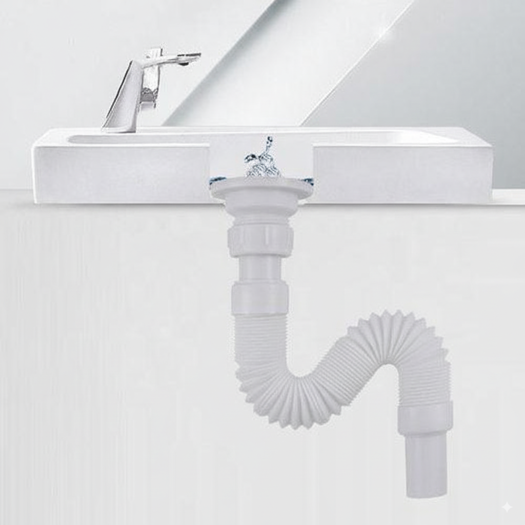 أنبوب صرف مرن قابل للتمدد مصنوع من مادة بلاستيكية عالية الجودة، يستخدم في تركيب أحواض المغاسل في الحمامات أو المطابخ. يتميز بسهولة التثبيت والمرونة التي تساعد في التكيف مع مختلف الزوايا والمسافات.