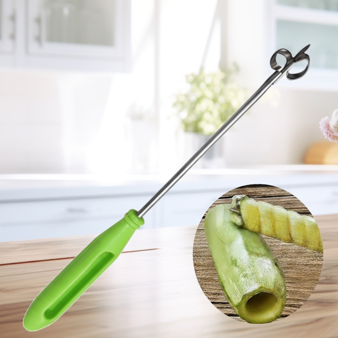 الحفّارة السحرية من نانا هي أداة مطبخ يدوية مصممة لحفر الخضار والفواكه مثل الكوسا، الباذنجان، أو البطاطا بسهولة وسرعة. تتميز بمقبض بلاستيكي مريح بلون أخضر، وشفره معدنية رفيعة وقوية تساعد في التفريغ الدقيق دون إتلاف الخضار. مثالية لتحضير الأطباق المحشية التقليدية مثل الكوسا المحشي
