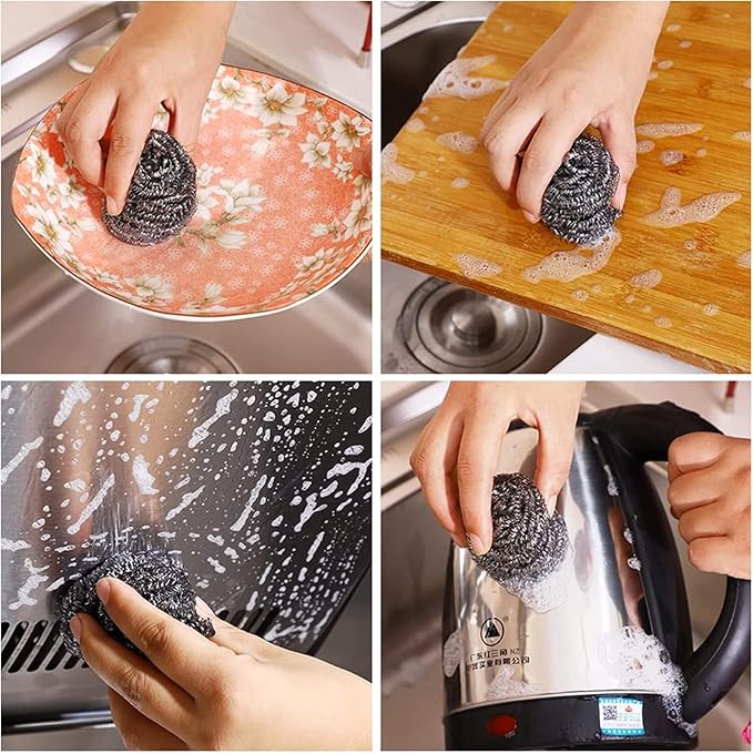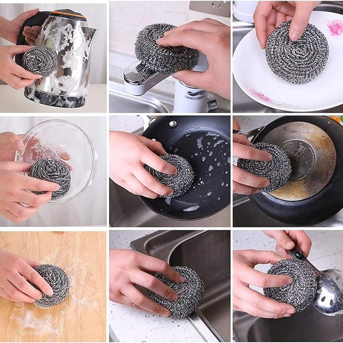 سلك جلي معدنية قوية وفعالة في إزالة الدهون وبقايا الطعام الصعبة من الصحون، القدور، المقالي، وأغطية الأواني. مصنوعة من أسلاك فولاذية عالية الجودة تقاوم الصدأ وتدوم طويلاً. مثالية للاستخدام اليومي في المطبخ، وتساعد في تنظيف عميق دون استخدام الكثير من المنظفات