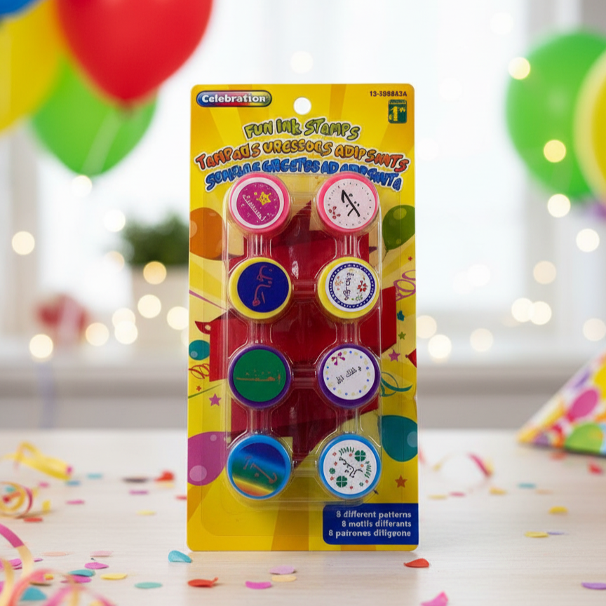 مجموعة ملونة من أختام الحبر مصممة خصيصًا للأطفال، تحتوي على 8 أختام بأشكال مختلفة ومبهجة، مثالية لاستخدامها في دفاتر التلوين، المكافآت الصفية، الأعمال الفنية، أو الهدايا الصغيرة. تحتوي كل قطعة على حبر داخلي جاهز للاستخدام دون الحاجة إلى علبة حبر إضافية