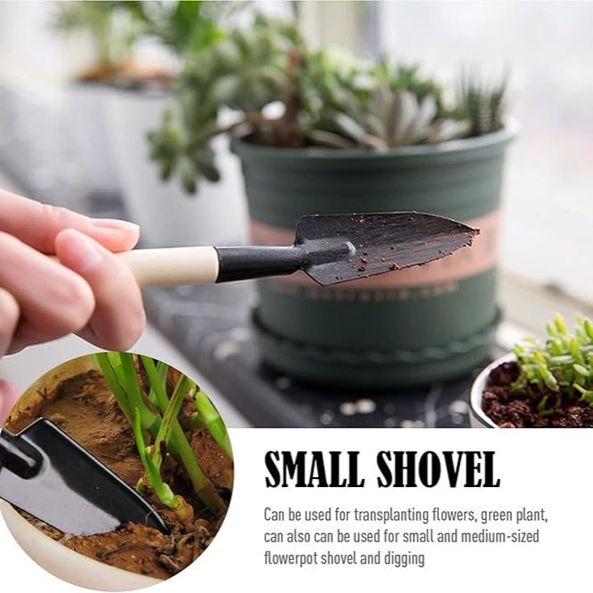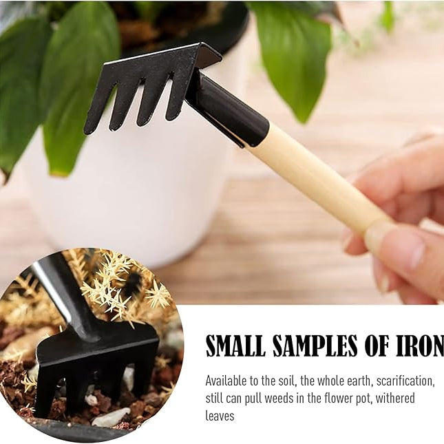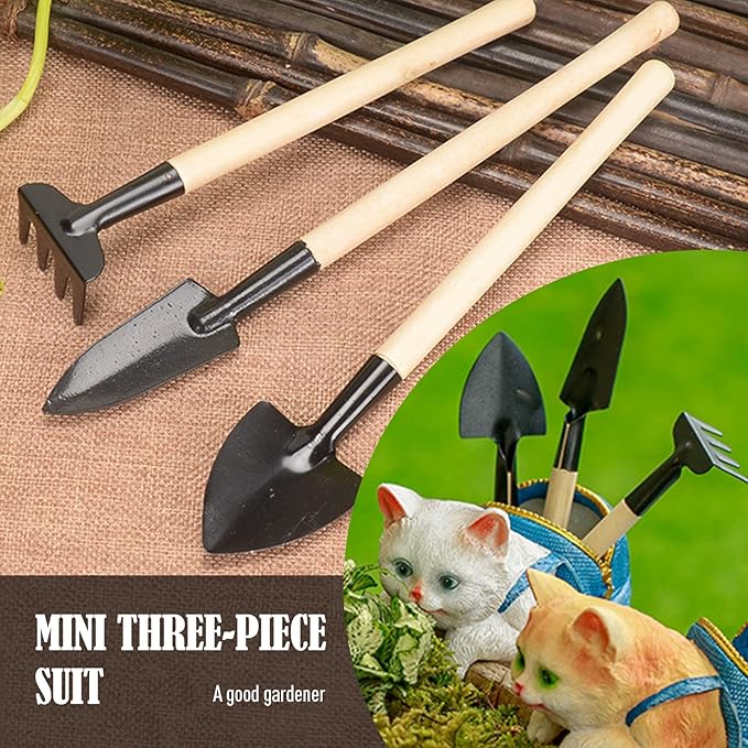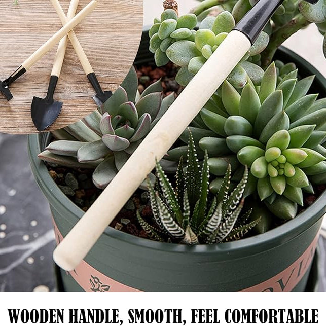 طقم أدوات حديقة صغيرة من 3 قطع - أدوات زراعة يدوية بمقابض خشبية