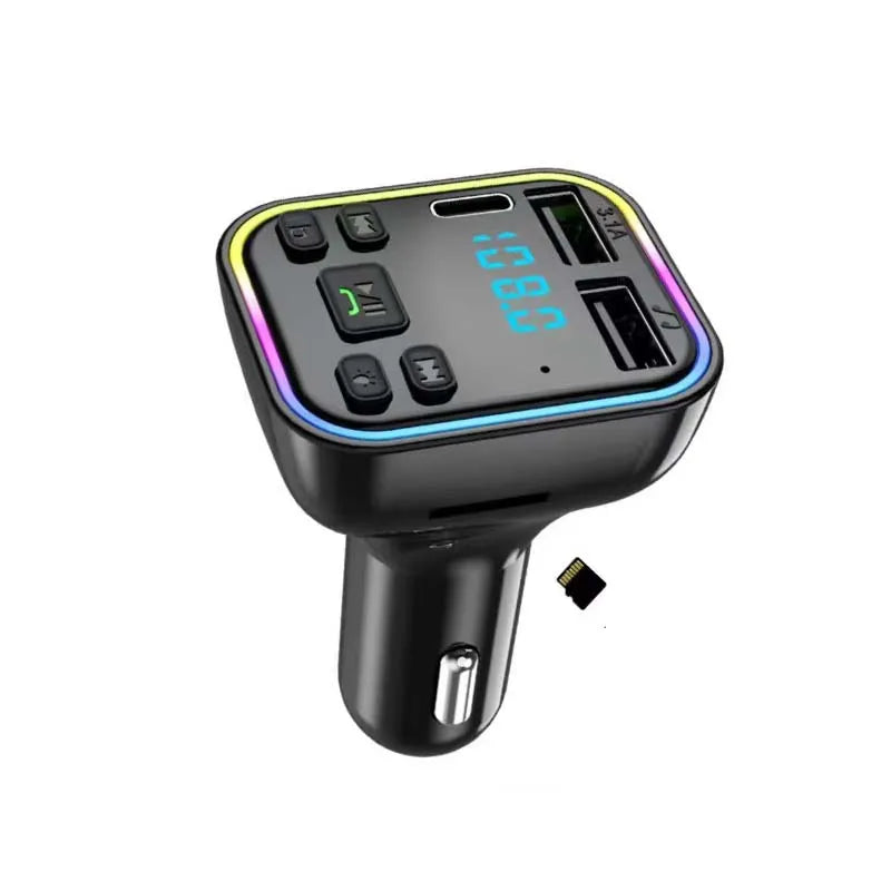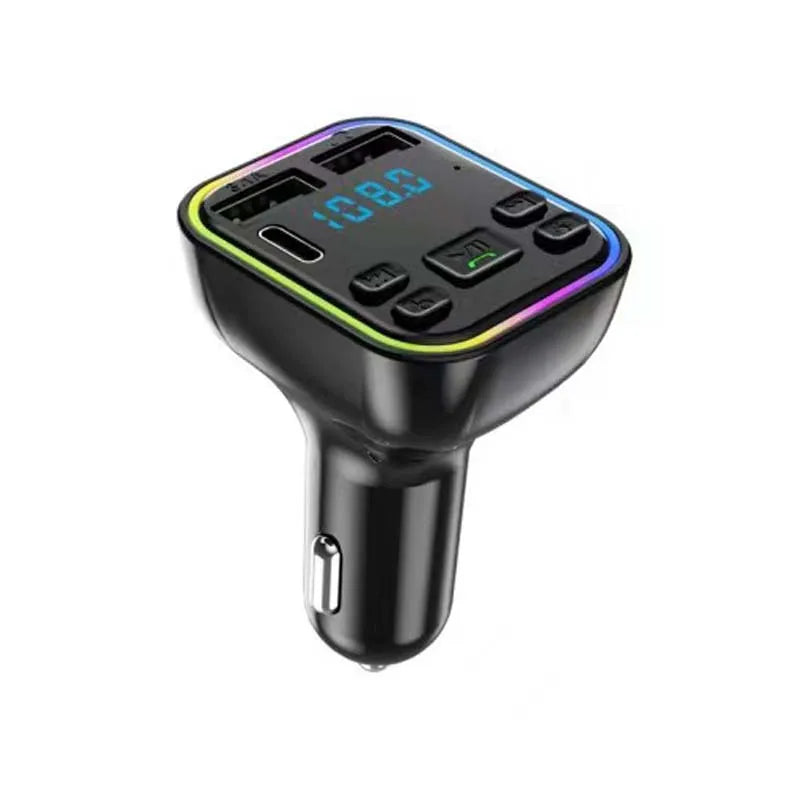 جهاز 3 في 1 للسيارة: ناقل FM لاسلكي + شاحن سريع PD Type-C + منفذين USB.