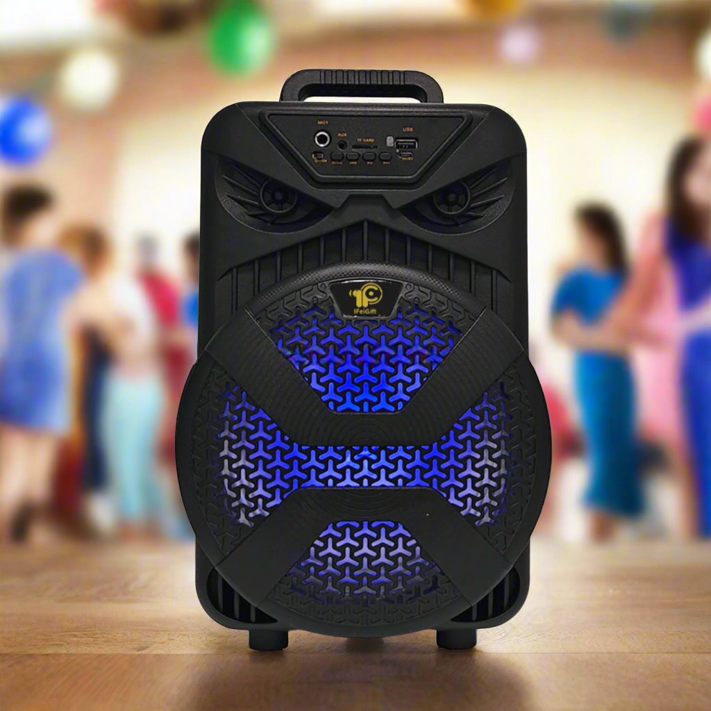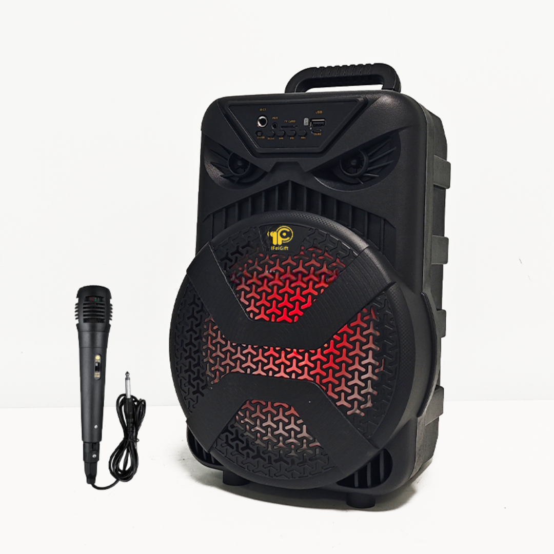 سبيكر صوتي محمول بقدرة عالية، حجمه 8 إنش وبشتغل على بلوتوث، فلاش، كرت ميموري وحتى AUX. فيك توصّله على الموبايل أو اللابتوب أو حتى تركب عليه مايكروفون وتغني كأنك بكاريوكي!