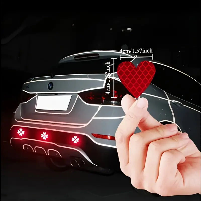 زوج ستيكرات شكل قلب أحمر، عاكسين للضو وبيعطوا لمسة جمالية ولمحة أمان بنفس الوقت. مناسبين للسيارات، الدراجات، السكوترات، أو أي مكان بتحب تزينه. بيثبتوا منيح ومصنوعين من مادة بوليستر متينة وبتضل لزقتها قوية لفترة طويلة. تصميمهم بسيط وملفت بنفس الوقت – شكلاً وحماية بقطعتين بس!