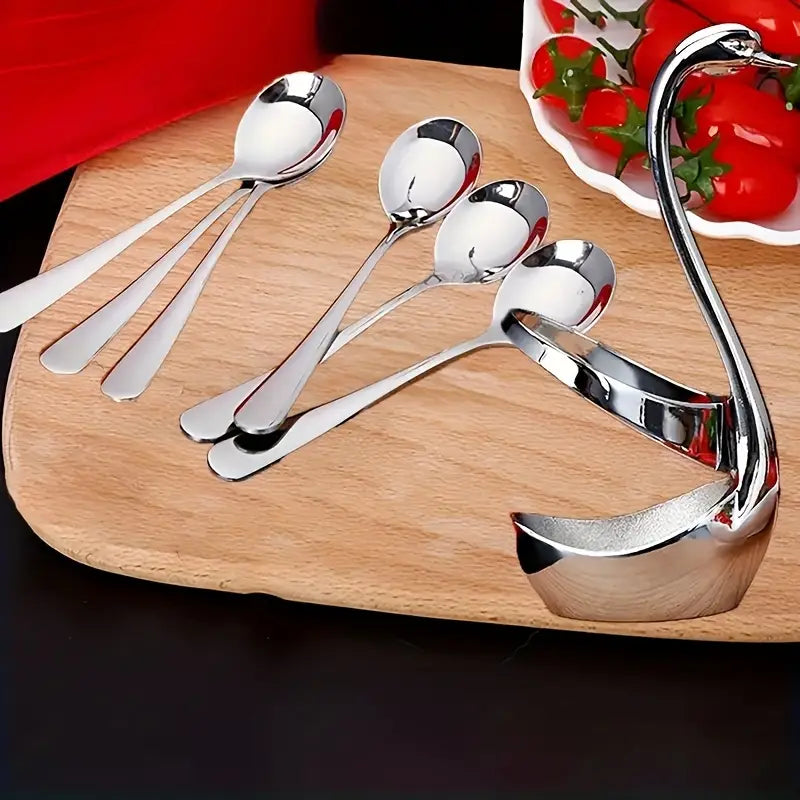 قطعة ديكور أنيقة وعملية لحمل الملاعق، مصنوعة من ستانلس ستيل بشكل بجعة مميزة. تصميم عصري ومرتب، بتضيف لمسة فخمة لسُفرتك أو طاولة الضيافة، سواء بالبيت، الحفلات أو الأعراس. شكلها لحاله بيخطف الأنظار!