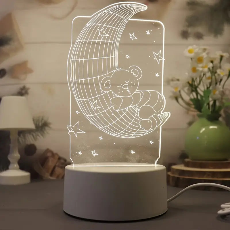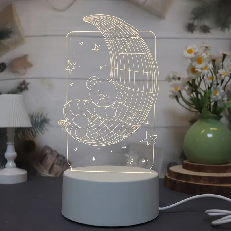 تيبل لامب الدبدوب والقمر -إضائة ثري دي