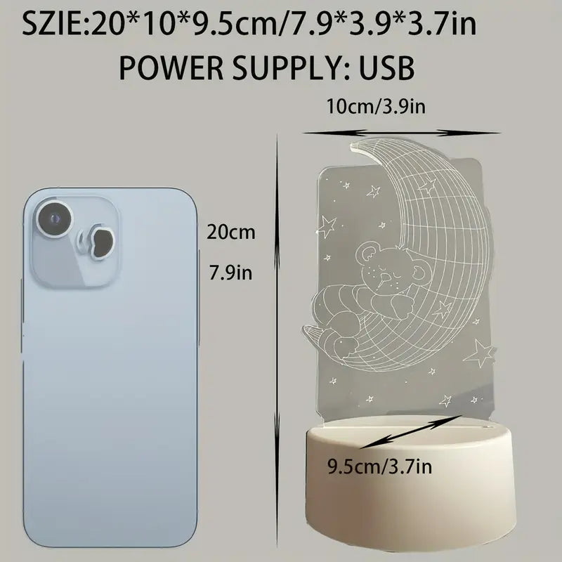 لمبة ليلية كيوت على شكل دبدوب نايم جوّا قفص فيه نجوم وقمر، بتشتغل على USB وبتنشر ضو دافي وهادي. مناسبة لغرف النوم، الصالون، المطبخ أو حتى الحمّام، وبتضيف لمسة دفء وجمال لأي زاوية بالبيت. شكلها لحاله بيشرح القلب!