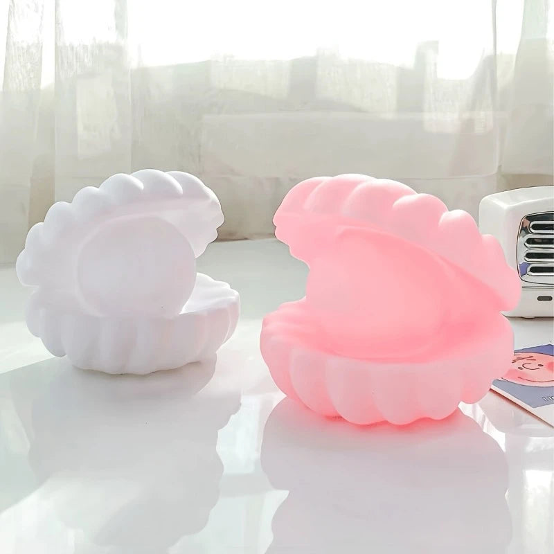مصباح ليلي ليد بشكل صدفة ولؤلؤة – إضاءة ناعمة وزينة ديكور أنيقة