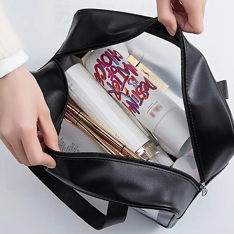 هاي الشنطة بتجنّن للسفر ، للجيم أو حتى للاستخدام اليومي! بتلمّي كل أدوات التجميل والعناية تبعتك بمكان واحد وبتخليهم مرتبّين ومرئيين من خلال الجهة الشفافة. ضد المي وسهلة التنظيف، يعني بتوفي معك بكل الظروف