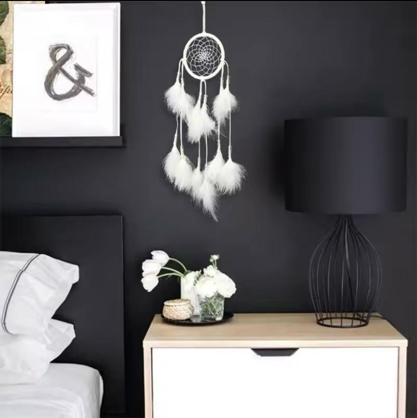 أضف لمسة من الجمال والهدوء إلى ديكور منزلك مع هذا المعلّق الجذاب من نوع "دريم كاتشر" (صائد الأحلام). يتميز بتصميم أنيق بلون أبيض ناعم مع شبكة يدوية تقليدية، ويتدلى منه ست ريشات فاخرة تمنح المكان إحساسًا بالسكينة والنقاء. مثالي لغرف النوم أو غرف المعيشة أو كهدية مميزة تعبر عن الأمل والطاقة الإيجابية.