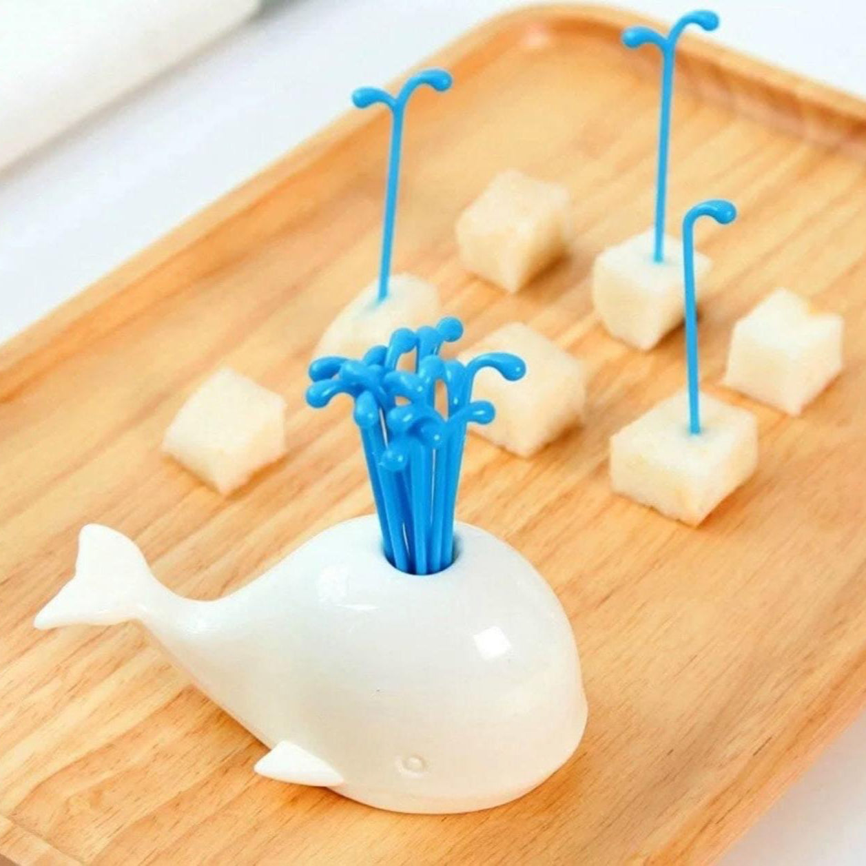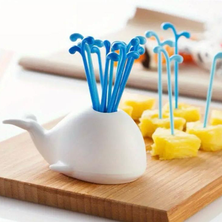 منتج مبتكر وجذاب لتقديم المقبلات أو قطع الفواكه بطريقة مرحة وأنيقة. يتكون من حامل على شكل حوت الأعواد مناسبة لتثبيت قطع صغيرة من الطعام مثل الجبن أو الفاكهة، وهي مثالية للمناسبات والحفلات أو لتشجيع الأطفال على تناول الطعام بطريقة ممتعة