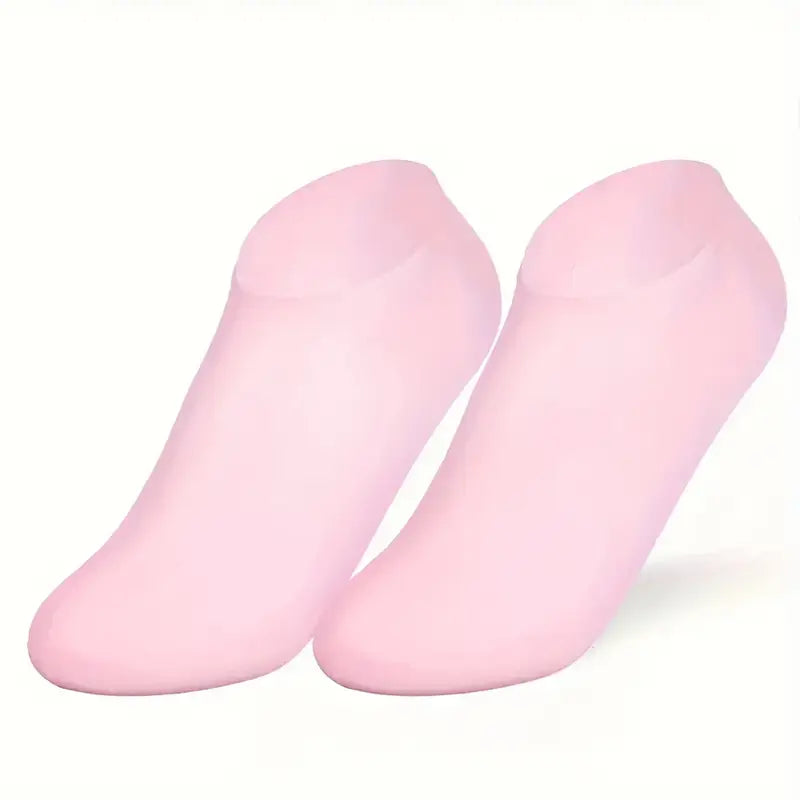 زوج شرابات سيليكون ناعمة ومرنة، معمولة بجل مرطب فيه خلاصة الألوفيرا، بتساعد على ترطيب الكعب وعلاج جفاف القدمين. قابلة لإعادة الاستخدام، وما بتنزلق بفضل التصميم اللي ماسك على الرجل كويس. تلبسيها بالليل وانتي نايمة كأنك عاملة سبا في البيت! مثالية للعناية اليومية بالقدم، خصوصًا في الشتاء أو للناس اللي بتعاني من تشققات