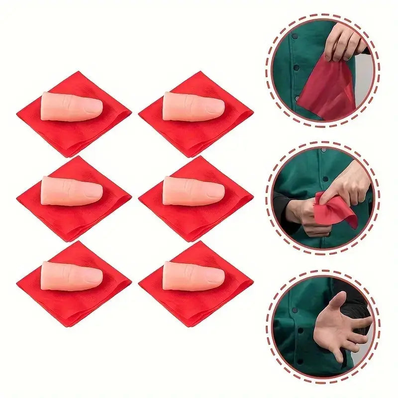 خدعة إصبع المطاط الأحمر مع وشاح