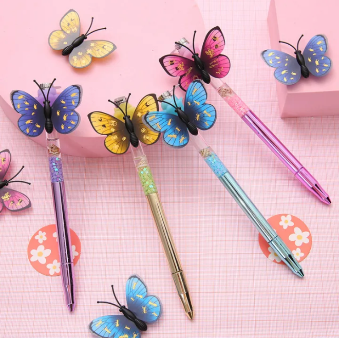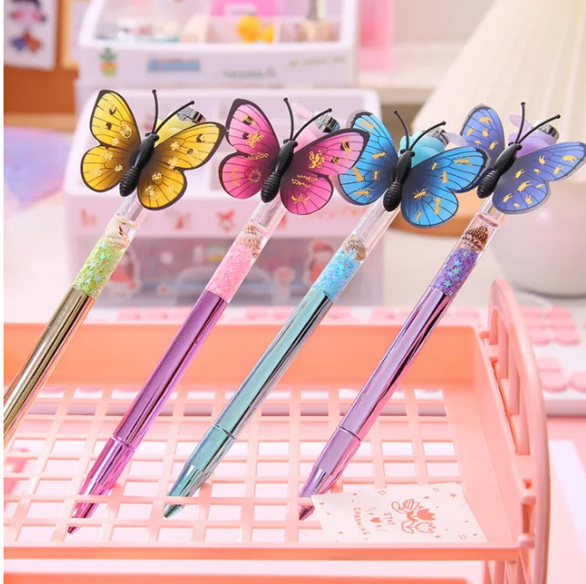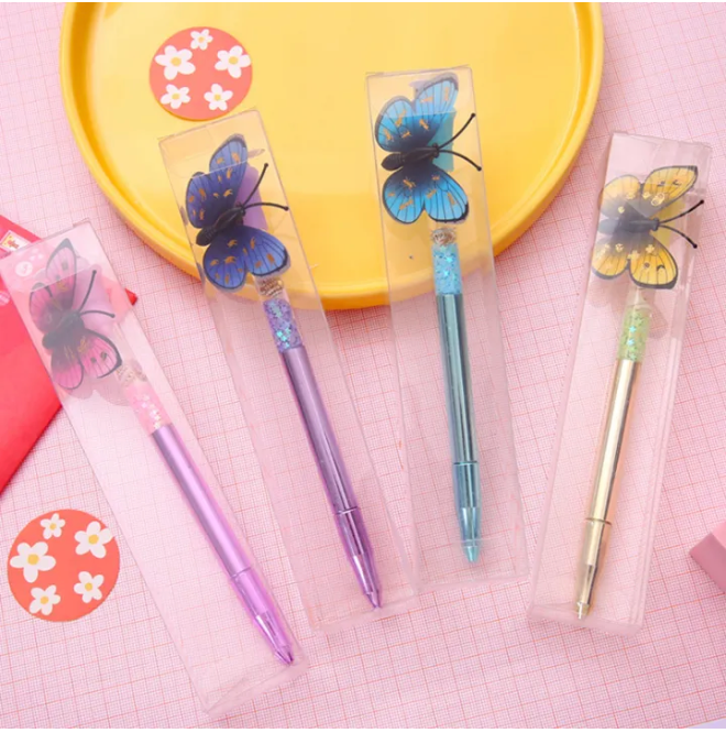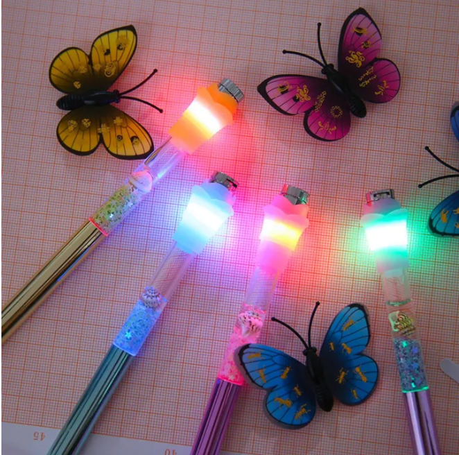 قلم جِل فريد من نوعه، بلمعة LED خفيفة وراسه ناعم بسماكة 0.5 ملم، بزينه فراشة كيوت بتمسك بالقلم بمغناطيس. مناسب للمدرسة، الملاحظات، أو حتى كهدية حلوة. بضيف لمسة بهجة لكل كتابة وبيخلّي الدفتر يلمع ✨.