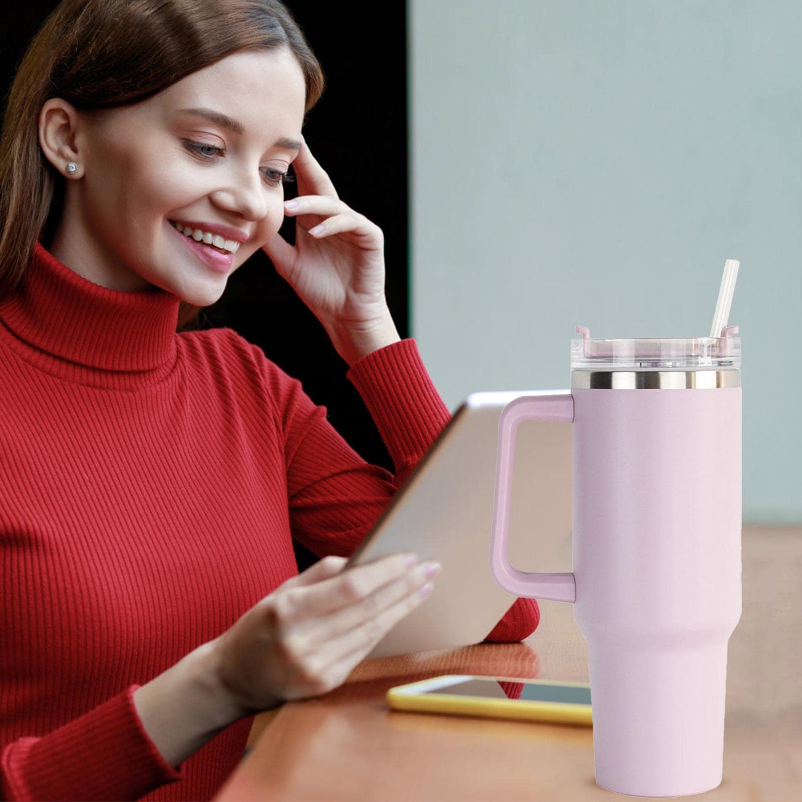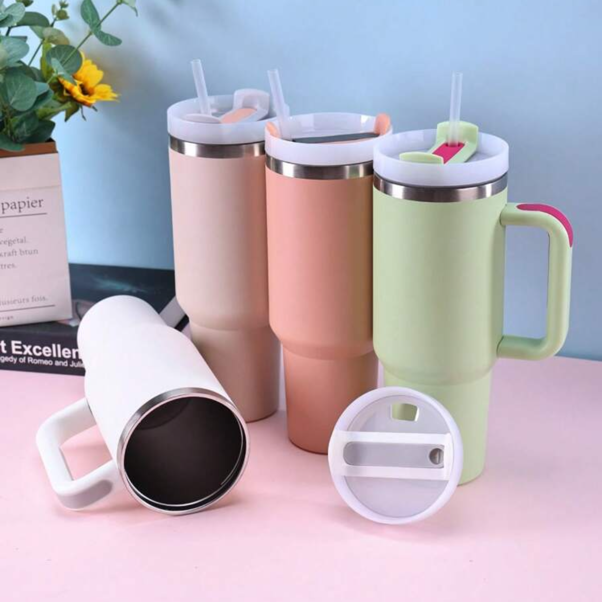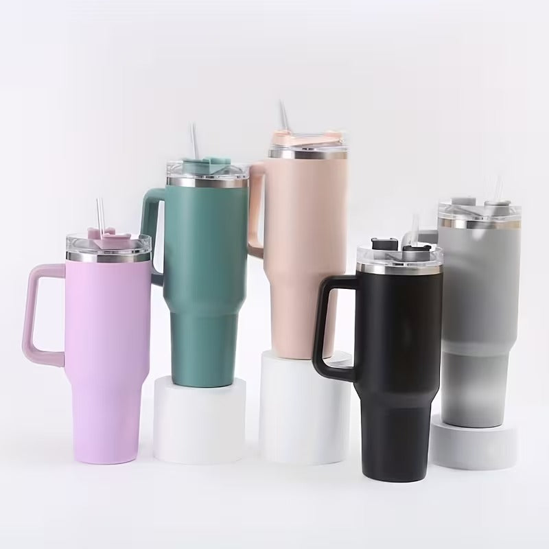 كوب حراري عملي وعالي الجودة مصنوع من الستانلس ستيل، مصمم للحفاظ على المشروبات ساخنة أو باردة لفترات طويلة بفضل العزل المزدوج بتقنية التفريغ مقبض مريح لسهولة الحمل، مما يجعله مثاليًا للاستخدام اليومي، أثناء السفر، في السيارة، العمل أو الرحلات. يأتي مع شفاطة لسهولة الشرب