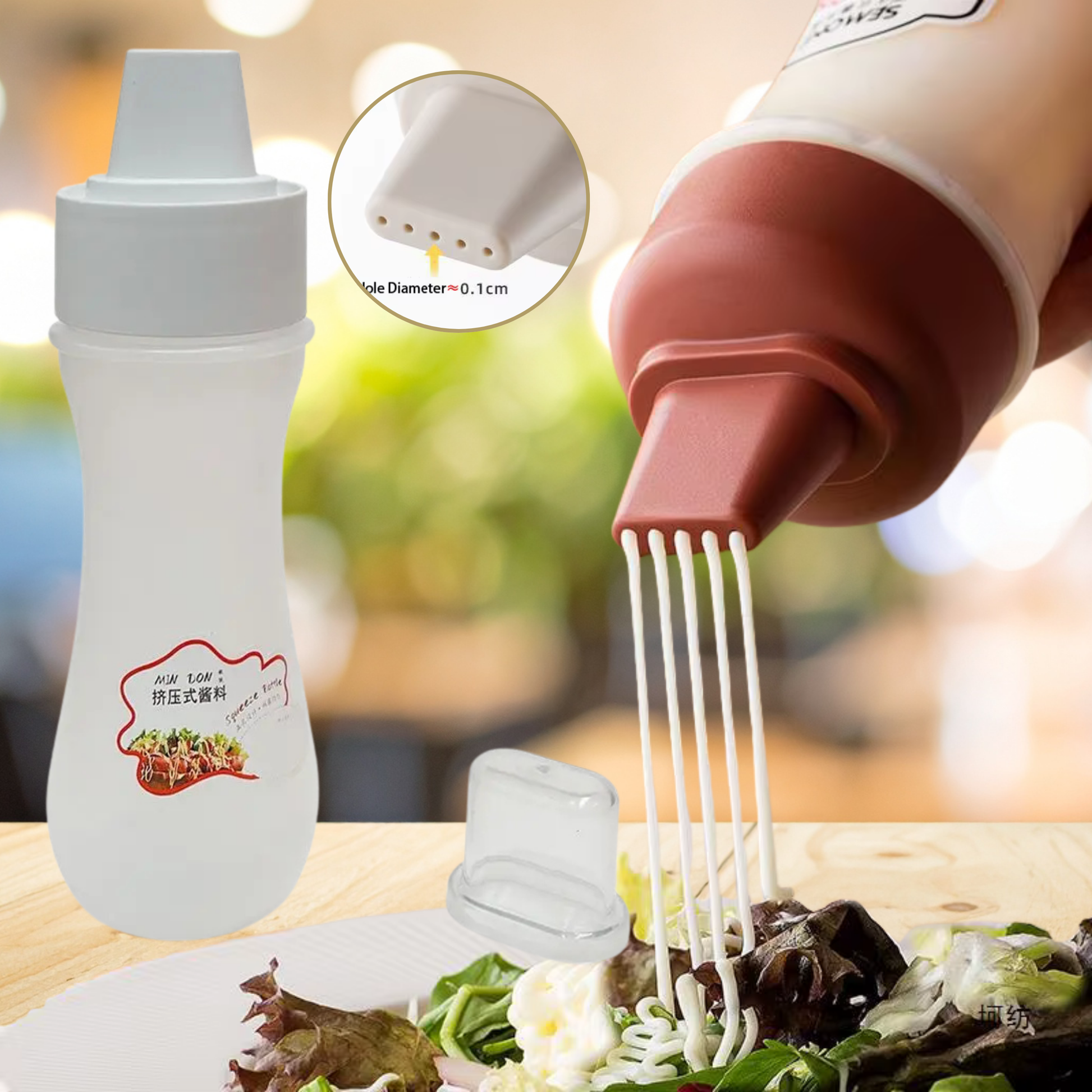 عبوة ضغط بلاستيك متين للصلصات ب ٥ فتحات حجم كبير : طول ٢٨ سم قطر ٧ سم