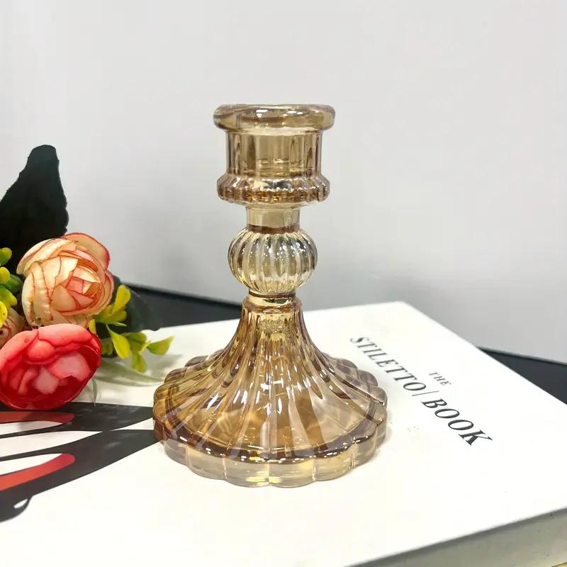 حامل شموع أنيق مصنوع من زجاج شفاف، يتميز بتصميم كلاسيكي بنقوش راقية تضيف لمسة فخامة ودفء لأي مساحة. مناسب للشموع الرفيعة أو العريضة حسب المقاس، مثالي لتزيين الطاولات، غرف المعيشة، المناسبات، والسهرات.