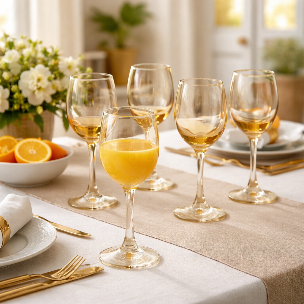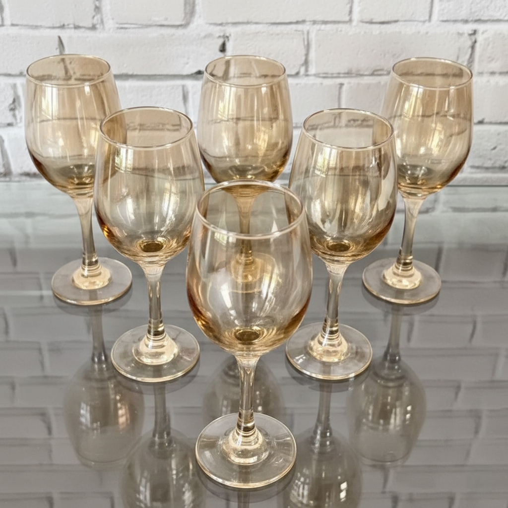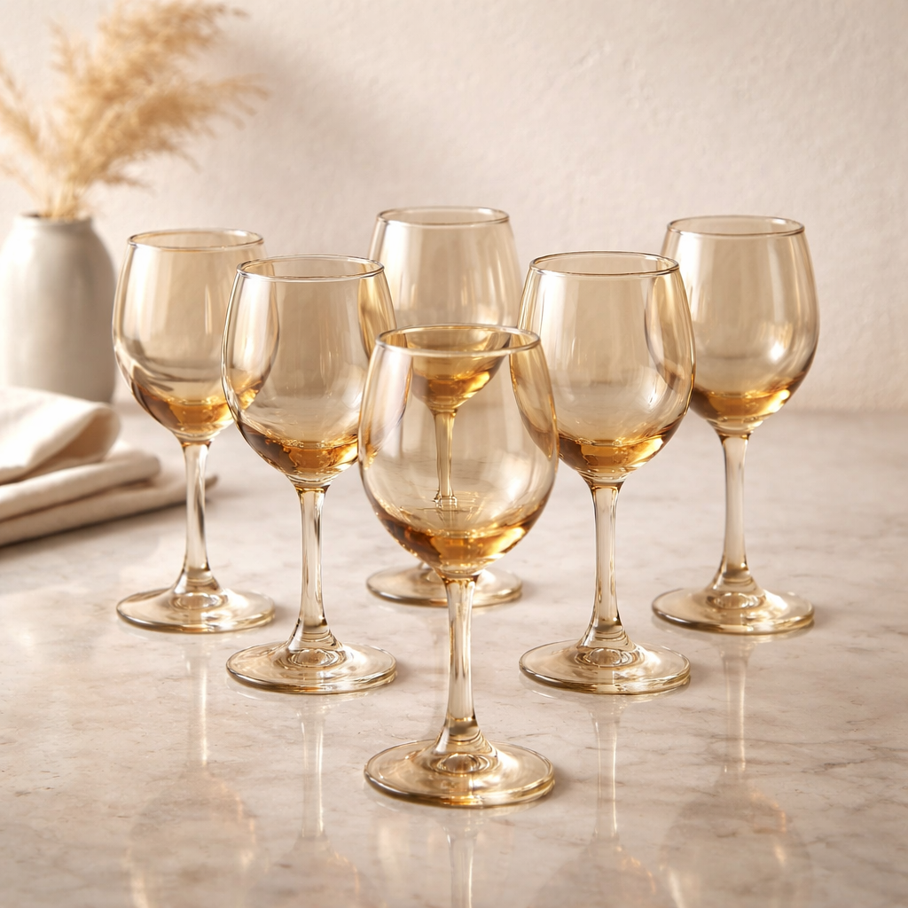 طقم كاسات زجاج أنيق بتصميم فاخر ولمسة ذهبية راقية تضيف لمسة فخامة إلى مائدتك. مصنوعة من زجاج شفاف بجودة عالية مع تدرج ذهبي جذاب يعكس الإضاءة بشكل جميل، مما يجعلها مثالية للتقديم في المناسبات والعزائم.